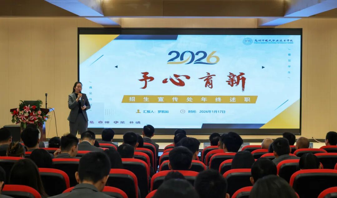 岁寒更知松柏劲,述职共绘锦绣章。2026年1月17日上午,惠州市现代职业技术学校在格物楼正见厅举行2025年度中层干部述职大会。计算机与工程系、健康民生系、护理医药系、体育竞技系、行政办公室、教务处、团委等21个教学系(部)及相关行政职能部门负责人依次登台述职,全面总结年度工作成效,系统谋划未来发展布局。学校顾问陈优生,党委书记、学校校长叶治斌,全体校委会成员及教职工代表出席大会。