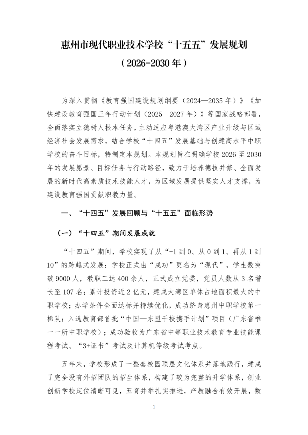 惠州市现代职业技术学校 “十五五”发展规划(2026-2030)年