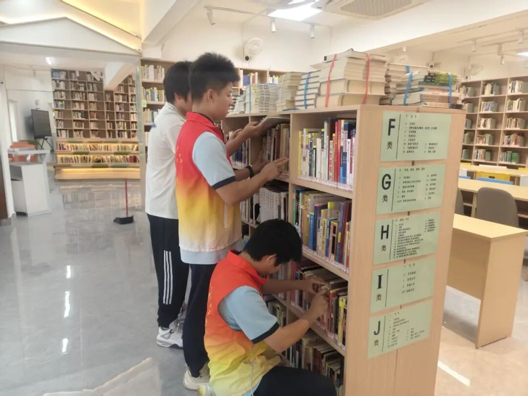职教高考升本部燃梦志愿服务队的志愿者们,利用周末和晚自习时间,悄悄走进图书馆。他们安静地穿梭在书架间,将一本本图书分类、整理、上架,累计整理归位图书5200余册。