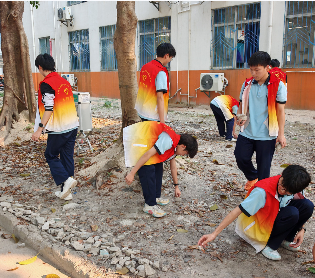 体育竞技系跃动志愿服务队的志愿者们,则把目光投向了脚下的校园。他们弯下腰、低下头,对操场跑道、林荫步道、绿化带进行“拉网式”排查,将散落的石块、杂物一一清理,共清理各类杂物、石块36袋,消除了师生运动、出行过程中的磕碰安全隐患。