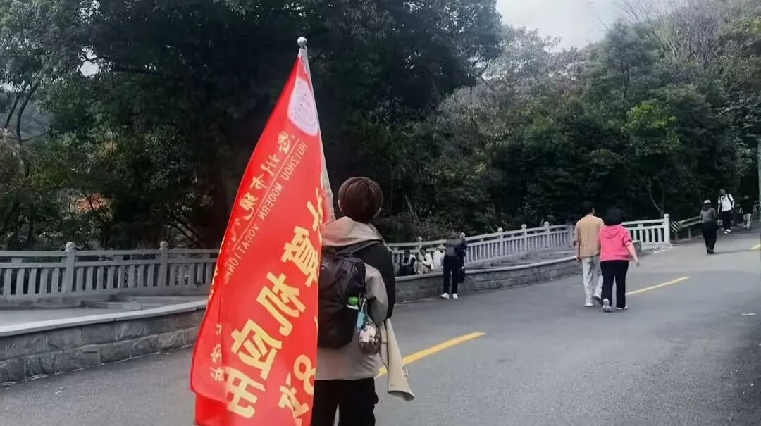 2025年的年初三,当大家沉浸在过年喜悦中,学生们都回了家,丁老师却萌生夜爬罗浮山的想法。“我要带着班旗登顶,替全班同学许愿。”她独自回到学校,拿起班旗,踏着夜色向山顶进发。山路崎岖,夜色渐深,疲惫袭来,她多次想放弃。但看着班旗,她又重新振作。登顶时,东方泛起微光,她举起国旗和班旗,迎着晨光拍下视频发给全班学生:“同学们,我们一起登顶啦,愿大家新的一年,眼里有光,不负韶华!”这份执着与热爱,照亮了学生心房。