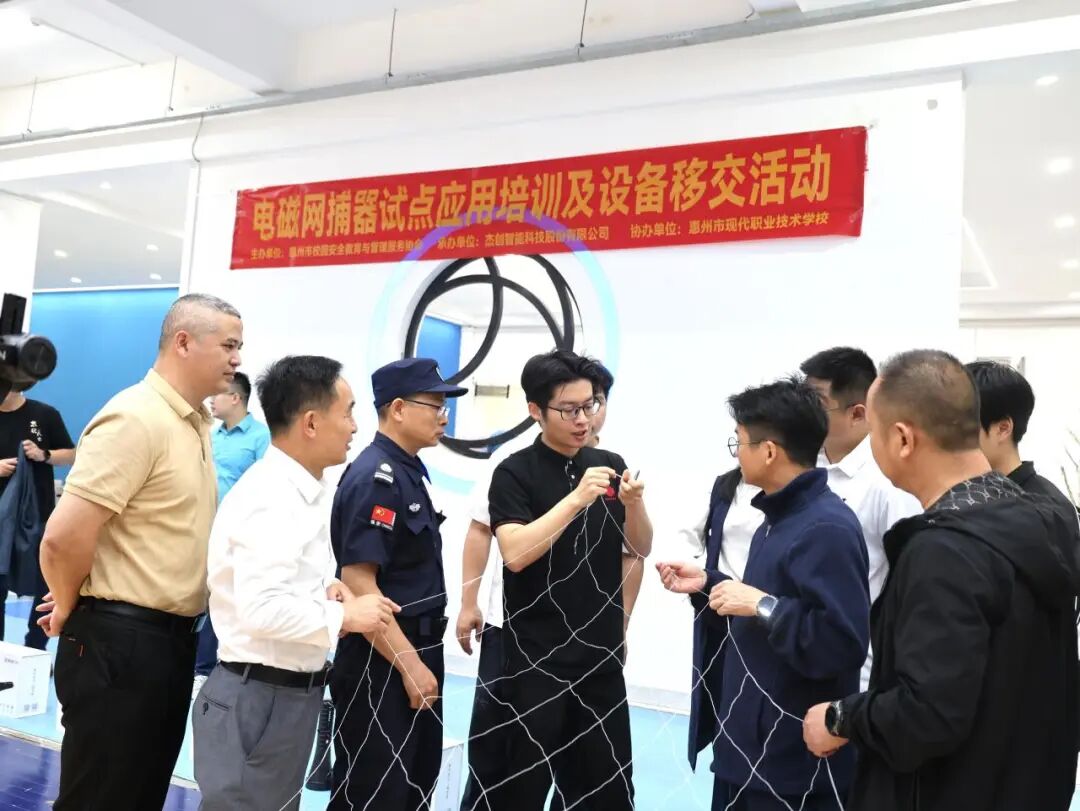 活动现场举行了简短的设备移交仪式。作为全市首批5所试点学校之一,我校正式获配手持式电磁网捕器1套,包含主机、网弹、充电器等全套配件。该设备将直接投入校园安保一线实战使用。