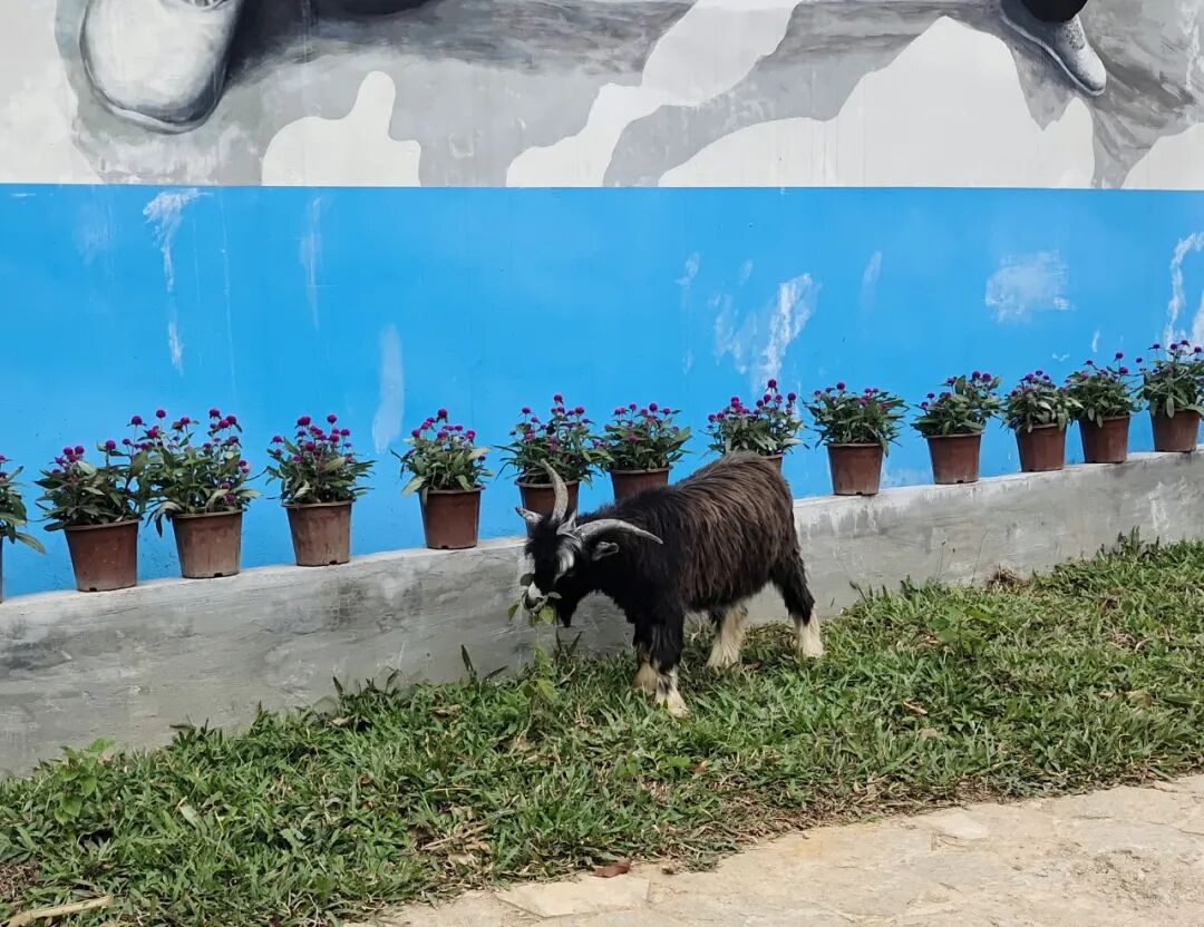 有一次,几个中医护理专业的学生正好撞见我的“作案现场”。他们没赶我走,反而蹲下来讨论:“羊吃了金银花会不会清热解毒?”“它好像更喜欢薄荷。”
